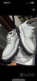 Scarpe eleganti donna tipo Oxford Taglia 38.5 Verniciate bianche con suola nera Con lacci regolabili Morbide Nuove mai usate