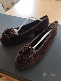 Ballerine in velluto marrone usate marchio locale Scarpet a Porter n. 37
