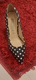 Eleganti décolleté in raso blu a pois bianchi tacco 10 n.37