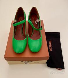 Scarpe in pelle verde con cinturino e tacco colorato Missoni