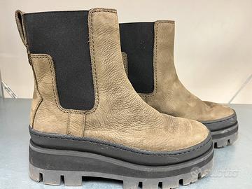 Come da foto vendo scarponcino Donna usato pochissimo come nuovo, colore Dark Olive Nub, Numero 38, prezzo 30 euro. Non spedisco.