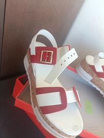 sandalo donna n 39 Laura Biagiotti in pelle con cinturino colore bianco e bordeaux con rifiniture in sughero misure e dettagli visibili in foto