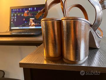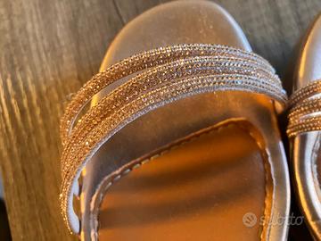 SCARPE DORATE CON BRILLANTINI E COLORE BEIGE