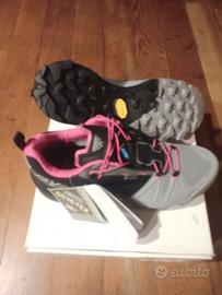 La suola Vibram® con una zona di arrampicata, garantisce aderenza e trazione su superfici sia rocciose che morbide.