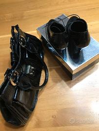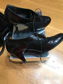 Vendo scarpe N.38 con borsa abbinata in vernice nera, le scarpe hanno inserti in camoscio come da fotografia. Sono in ottimo stato come nuove perchè usate solo qualche volta e la vernice non è rovinata. Per ulteriori informazioni contattare 3487493820.