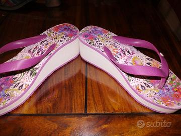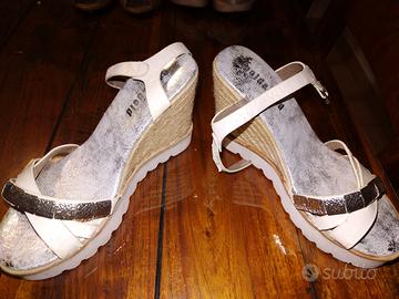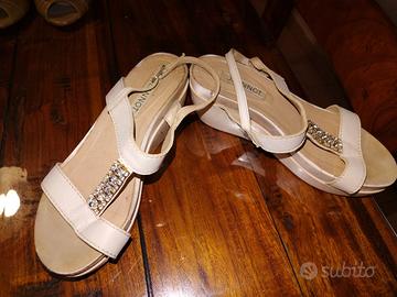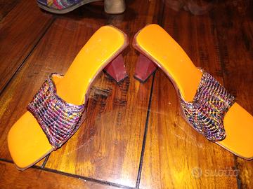 Vendo 6 paia di scarpe estive : S scarpe ecru'Nero Giardini , sandali infradito Desigual 36, sandali con zeppa mai usata 35, sandali jeannot beige buone condizioni n 36, sandali azzurri 36 e sandali arancioni n37(entrambe comprate in boutique). quelle arancioni usate 1 volta. Vendo in blocco