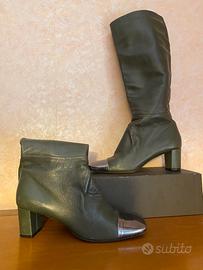 Vendo come da foto elenco: 1 paio di ballerine in pelle n.37 nuove, stivaletti cuoio n.39 , stivali alti verdi in pelle n.38 ,scarpe in camoscio e pelle n.38 con zeppa e sandali in pelle n.38 tutte in ottimo stato .