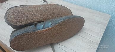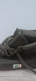 Scarpe militari in tela bordate in camoscio, stringate, mai usate,