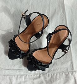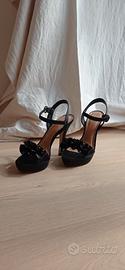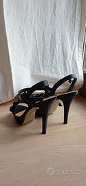 Scarpe eleganti misura 37, nere tessuto tipo raso, tacco 12, con cinturino. Ottime condizioni, come si vede dalle foto!