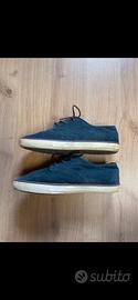 Scarpe eleganti da bambino misura 33, colore blu scamosciato con lacci marroni, marca