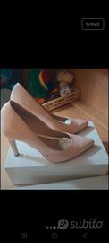 scarpe eleganti tacco alto cm.10 in vernice usate solo una volta, ha non piccola spellatura in un tacco, per questo le vendo a prezzo basso, marca Ovye'