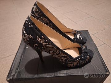 scarpe rosa, rivestite da pizzo nero, molto eleganti. num 39