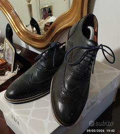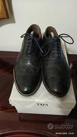 Scarpe eleganti da uomo, modello (Oxford) verde scuro con lacci blu, del marchio italiano Tata Italia N°43