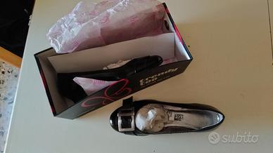 Vendo scarpe eleganti da donna, numero 35, nero lucido, con fibbia in metallo e tacco basso (2 cm): perfette per chi cerca stile e comodità insieme.