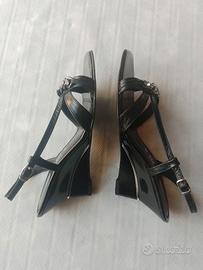 Scarpe da donna eleganti, marca Stefany P, colore nero, vera pelle, suola in cuoio, tacco cm 7, usate solo una volta per cerimonia, conservate nella confezione originale.