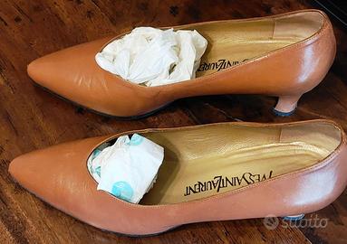 Vendo in condizioni ottime, poco utilizzate, delle scarpe per donna ocra/marroncino chiaro molto eleganti, della prestigiosa maison Yves Saint Laurent. Tacco basso. Taglia riportata sulla suola 38. Si tenga presente, però, che mia madre, proprietaria delle scarpe, normalmente veste, a seconda della scarpa, o un 38 o un 39 e che la lunghezza del piede è di 25,5 cm circa. Quindi si prega di considerare questa circostanza ai fini della taglia. Si spedisce senza scatola originale. Prezzo non trattabile.