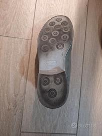 - Tomaia in pelle grigia con dettagli texturizzati.