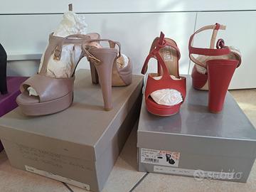 Vendo eleganti sandali in pelle, tortora e rosso, tacco alto, taglia 38. un paio di Stelio Malori. ottime condizioni. Super affare. No perditempo.