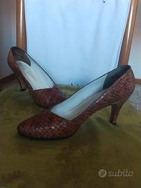 Scarpe in rettile color marrone chiaro, eleganti o per occasioni speciali. Usate una volta sola. Tenute e conservate benissimo. Misura 37 scarso. Consegna a Milano citta anche di persona con pagamento contanti, oppure spedizione tramite PTT con pagamento a mezzo bonifico bancario