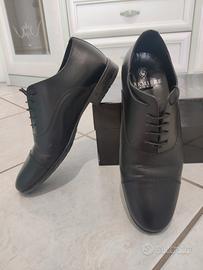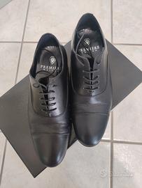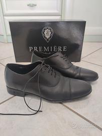 Scarpe da uomo Première Maison modello Oxford cap-toe in vera pelle di vitello, colore nero classico. • Taglia 39 • Pelle di alta qualità, morbida e ben tenuta • Suola in gomma con battistrada intatto • Utilizzate pochissimo • Scatola originale inclusa Le scarpe presentano solo leggere pieghe naturali della pelle, tipiche del vitello, ma nessun segno rilevante. Ideali per cerimonie, eventi formali, ufficio o occasioni eleganti.