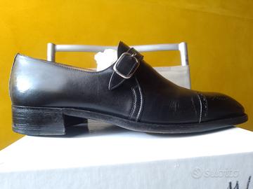 La suola presenta normali segni di utilizzo, come visibile nelle foto, ma la scarpa rimane di ottima qualità e può essere facilmente risuolata.