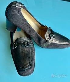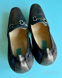 Bellissime scarpe Ausonia, Donna Soft, linea comfort, in suede marrone e dettagli oro. Ideali per occasioni speciali.