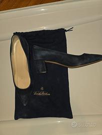 scarpa tacco 5 cm camoscino blu leggermente scollate molto fini ed eleganti