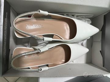 3 paia di scarpe eleganti numero 39 da donna, 2 paia ( Bianco e beige mai utilizzati) il rosso utilizzato 1 volta soltanto, vendo a 10 euro il paio, anche separatamente.
