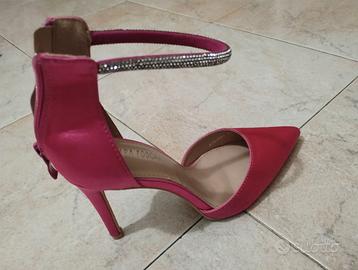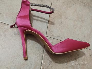Vendo décolleté colore fucsia in raso .tacco alto 10cm. Usate poche ore n.39 . Nessun segno di usura . Ottime per capodanno . Per inutilizzo vendo a €. 19,,00