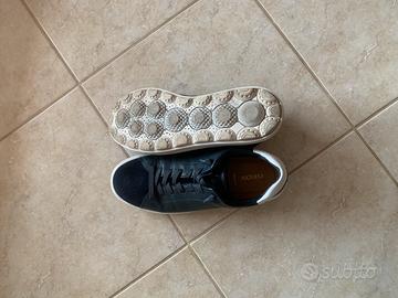 Scarpe da cerimonia con punta in velluto e lati in pelle, soletta presente. Estive con i lavci eleatici senza bisogno di fiocco. Sono geox spherica