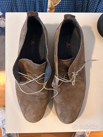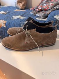 Scarpa elegante con lacci intercambiabili, camoscio marrone chiaro, taglia 44. Semi nuove, usate pochissimo