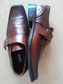 scarpe pelle marroni tg. 42, eleganti, punta quadra, chiusura con fibia, usati pochissimo ,"Exige"