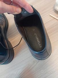 Pelle colore blu scuro lucido, suola interna morbida per un confort ottimale.