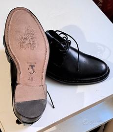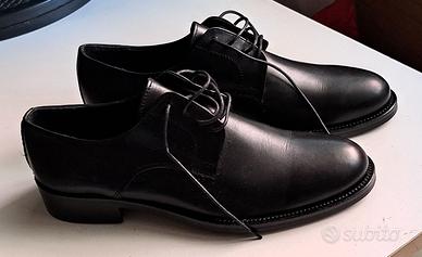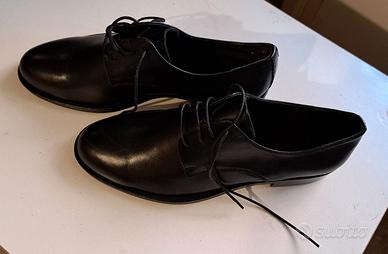 Vendo scarpe eleganti nere da uomo in pelle, modello Derby. Classiche, comode e perfette per ogni occasione formale (matrimoni, lavoro, eventi). Fatte in Italia.