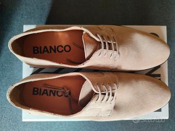 Vendo nuove scarpe stringate da uomo del marchio Bianco, in pelle scamosciata color tan (beige chiaro), taglia 46.
