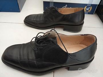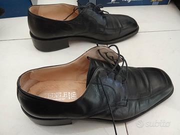 Vendo per inutilizzo un paio di scarpe eleganti da uomo, in vera pelle, suola in cuoio, coi lacci, colore nero, taglia 43. Marca M. Fedele. Usate pochissimo, in ottime condizioni.