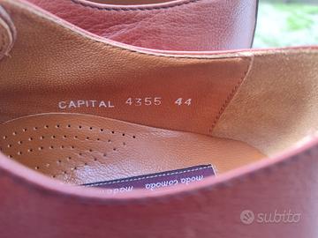 Modello classico, perfetto per cerimonie, ufficio o uso quotidiano elegante. Taglia 44, colore cuoio chiaro/arancio bruciato.