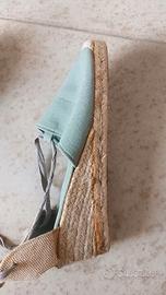 Espadrillas da donna con lacci, usate solo 2 volte, ancora in ottimo stato. Il colore è grigio ma al sole può sembrare quasi turchese. Lo scatolo originale è leggermente rovinato.