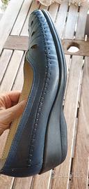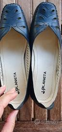 Scarpe da donna, con zeppa in vera pelle, traforate, morbidissime. Molto leggere e suola molto flessibile, perfette per camminare comodamente. Altezza zeppa cm 4,8. Taglia 39. Marchio "Planeta" Usate una volta perché acquistate a fine stagione, condizioni pari al nuovo.