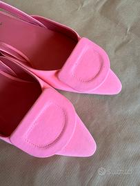 Colore rosa brillante in nylon con suola in pelle