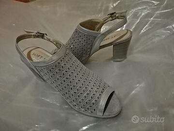 Calzatura estiva N°40 grigio chiaro comfort con strass, tacco alto circa 7 cm.
