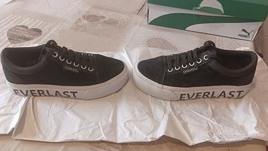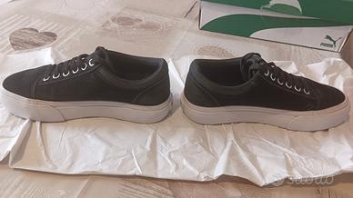 Scarpe da ginnastica o da passeggio in velluto nero con rialzo in gomma di media altezza.