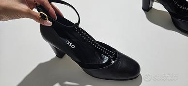 Vendo scarpe artigianali fatte a mano numero 39, colore nero, tacco doppio altezza 8 , brillantini swarovski come decorazione.