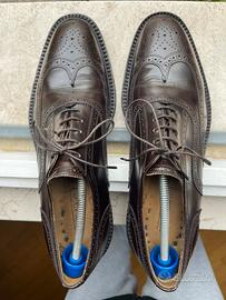 Scarpe stringate artigianali, fatte a mano, marca Regain, mod. Derby Full-Brogue, colore testa di moro, numero 44, bellissime, portate pochissimo, come nuove.