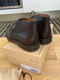 Scarpa artigianale calzata pochissimo e tenuta sempre in forma di legno. Numero 40.5. Si vendono con e senza forma. Prezzo senza forma Euro 100. Color testa di moro.