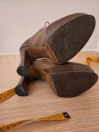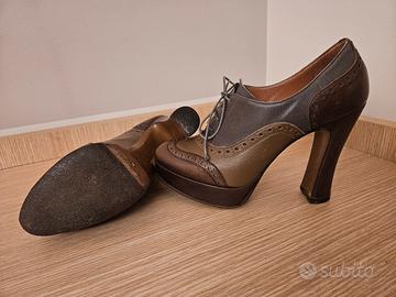 Scarpe stile brogue con plateau e tacco alto. Vera pelle.