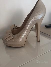 Scarpe fendi color panna con pailletes numero 41 . Tacco 12 cm con plautea. Usate,