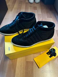 Scarpe uomo Fendi nuove, mai indossate, comprese di scatola originale e lacci. Taglia 8 descritta come in foto, ossia 42 con calzatura ampia quindi corrisponde anche ad un 43. Va bene per un 42.42/2 e 43. L’etichetta della taglia è nella foto. Scambio a mano.