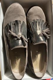 Scarpe tipo mocassino invernali marca Tomasi modello Rosa camoscio grigio frange fluoriscenti n. 40 ma abbindante. Direi che è un 41
