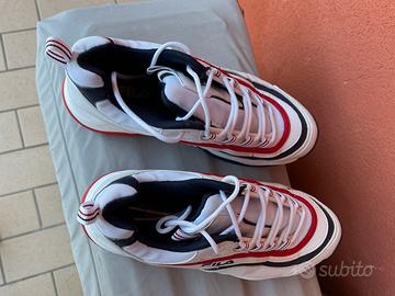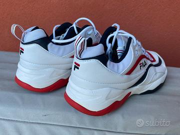 Scarpe Fila uomo modello come da titolo in taglia 42. Vestono un pelino grande perché io di solito porto una taglia 43. Usate alcune volte ma ancora in ottimo stato. Colore bianco con dettagli rosso e blu Possibilità di spedizione ma anche di consegna a mano in zone limitrofe (da concordare)